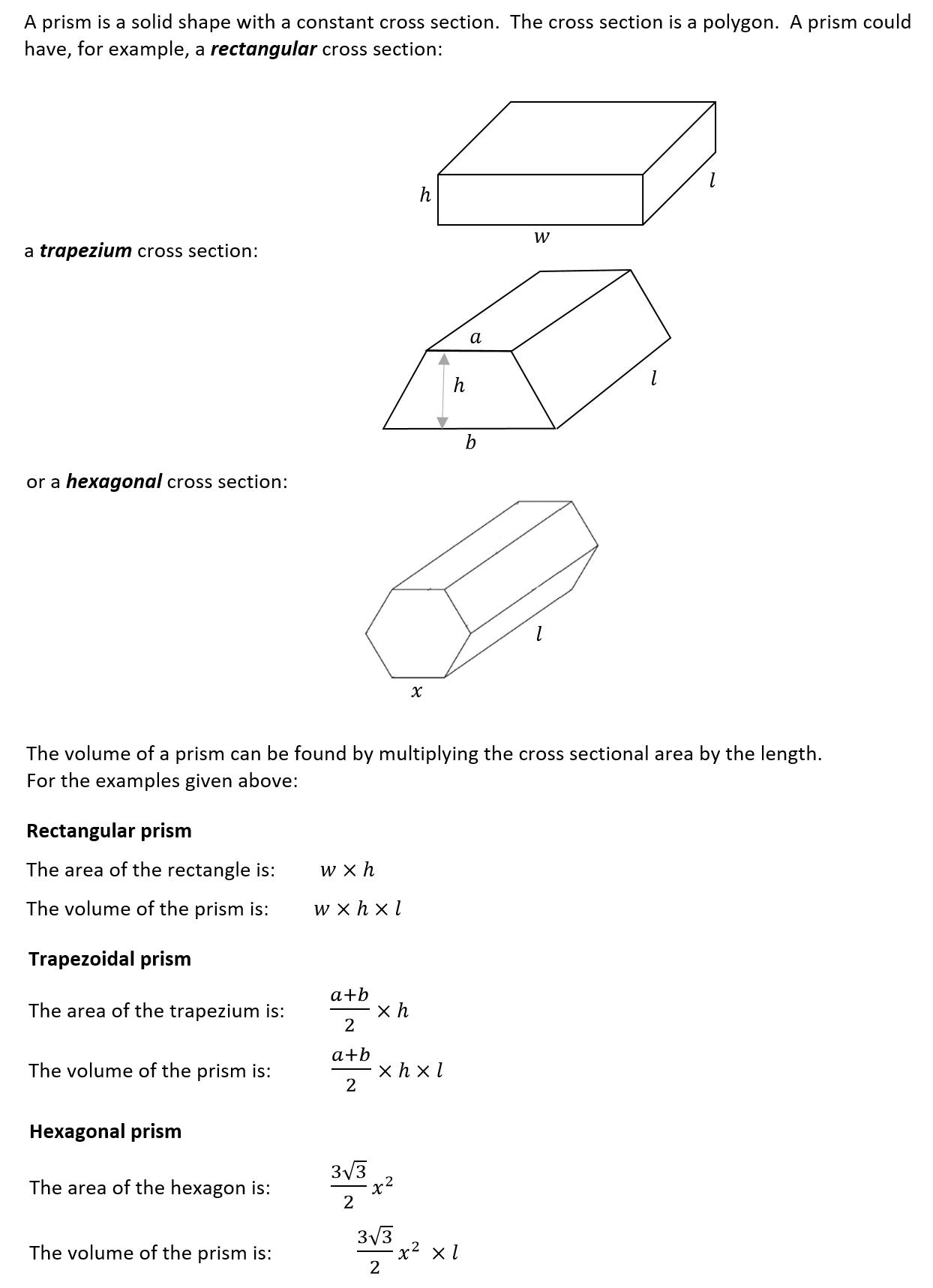 Volumes of prisms